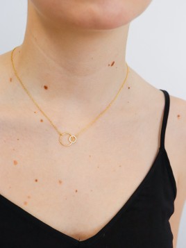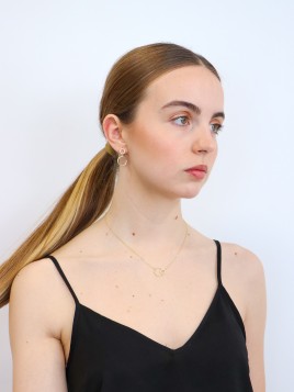 Los pendientes DOUBLE DORADO están formados por dos círculos, uno de ellos con circonitas blancas. Son los pendientes perfectos para eventos importantes, aunque también los puedes llevar en tu día a día.