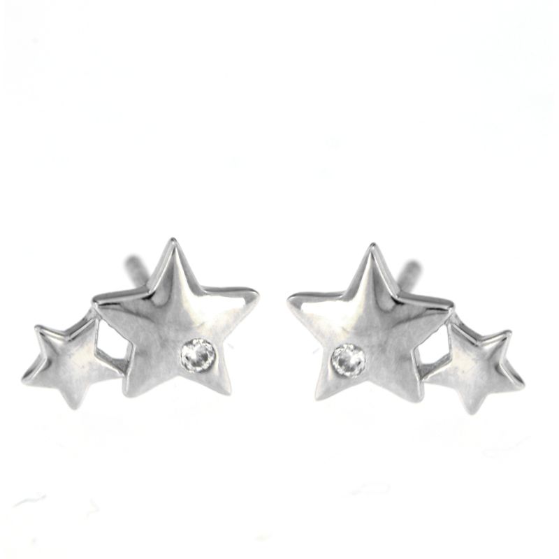 Pendientes de plata Orión con diseño de estrellas y circonita brillante. Pendientes elegantes de mujer, delicados y modernos, perfectos para aportar luz y estilo a cualquier look.