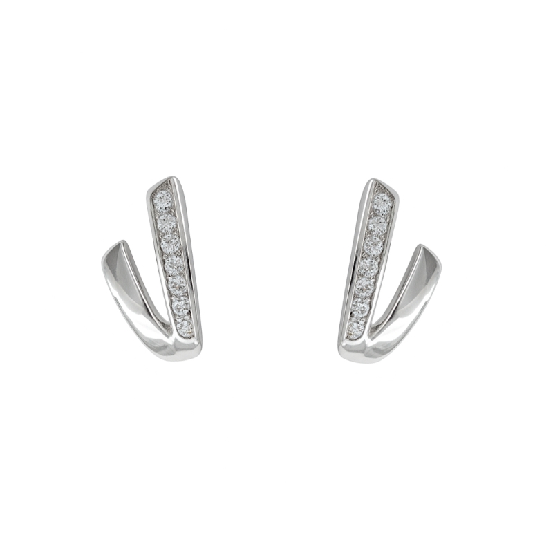 Pendientes de plata René con diseño curvo y detalle de circonitas que aportan brillo y sofisticación. Su estructura combina una línea de piedras con una forma pulida que crea un efecto moderno y elegante. Ligeros y cómodos, son ideales tanto para el uso diario como para ocasiones especiales. Su diseño estilizado los convierte en una pieza versátil que aporta luminosidad y un toque refinado a cualquier look.